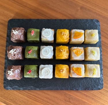The square shape reflects simplicity and intension with clean lines, balanced proportions, and nothing excessive. Flavors are inspired by the Asian ingredients we grew up loving, such as, black sesame, pandan, ube, mango, sweet rice, and tea that are reimagined in a way that feels familiar yet distinct.